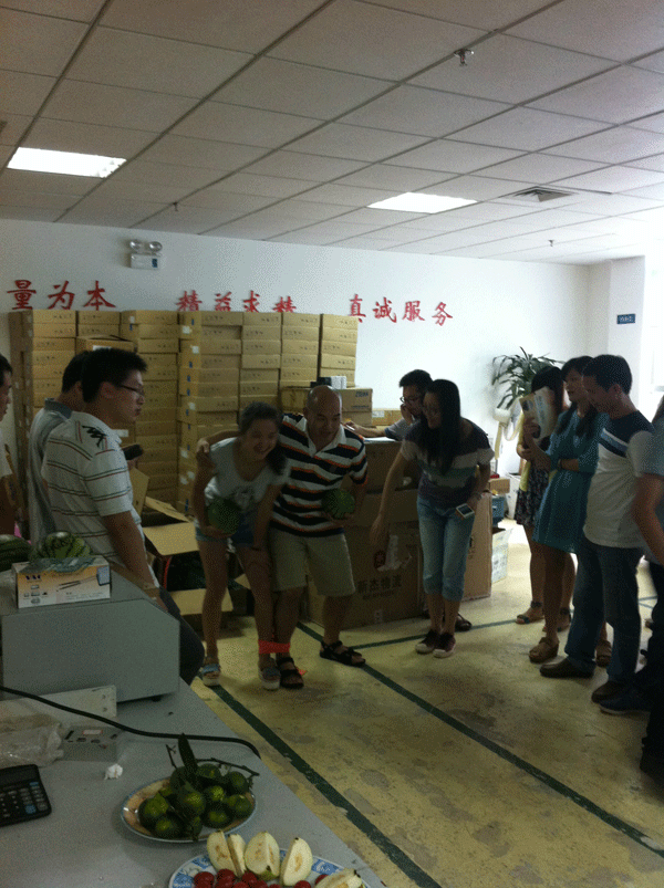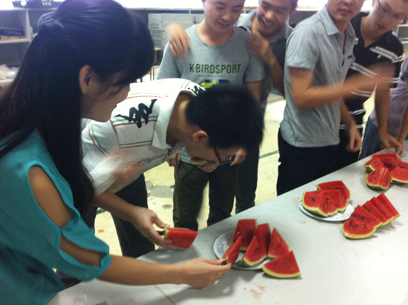 在炎热的夏日,,,,,,,吃西瓜可算得上是一大快事。。。。。为富厚各人业余生涯,,,,,,,增强公司员工的凝聚力,,,,,,,我公司于2013年7月26日在公司举行吃西瓜大赛。。。。。角逐分为:猜西瓜重量、运西瓜、吃西瓜三个环节。。。。。